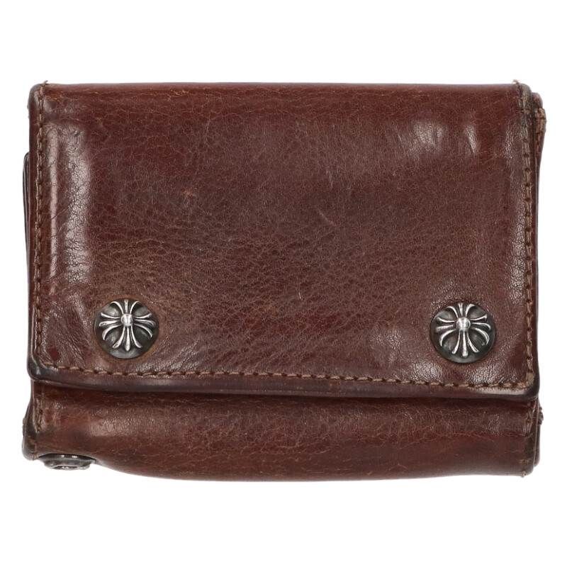 【サイズ】表記なし【サイズ詳細】横11cm,縦8.5cm【状態ランク】B(使用感がある商品)【商品説明】小銭入れ×1、札入れ×1、カード入れ×3角ステッチにほつれがあります角、表面、内側等に擦れがありますジップ周りに青錆があります小銭入れ内側、内側、札入れ内側等に汚れがあります【付属品】 国内配送の場合RINKAN購入証明書が付属します。※状態ランクC以下、シルバー・ゴールドパーツのない商品は除く【品質表示】表記なし【ブランド】クロムハーツ(Chrome Hearts)【アイテム】財布【商品名】 3FOLD/3フォールド クロスボタンレザーウォレット財布【カラー】ブラウン×シルバー【対象】メンズ【管理番号】15268-251004-0507