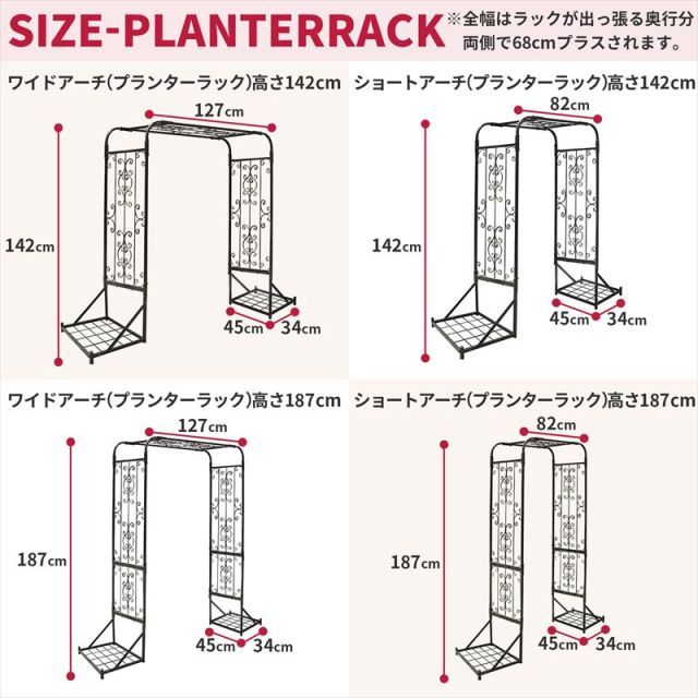 ガーデンガーデン IBフェンス アイアン ローズパネル ワイドアーチ プランターラックタイプ 高さ142 cm IBF-RSPNL-