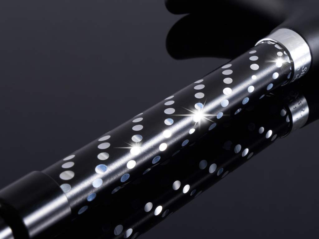 【華やかなデザイン】杖上部に光が当たるときらきらと光る表面加工