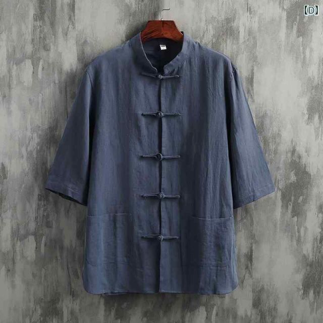 3 XL 秋冬 コーデ メンズ 服 シンプル ファッション オシャレ 大人 かっこいい 大きいサイズ ストリート 紳士服 軽 通気 スタンドカラーリネン シャツ 半袖 唐 スーツ レトロ 綿 リネンシャツ
