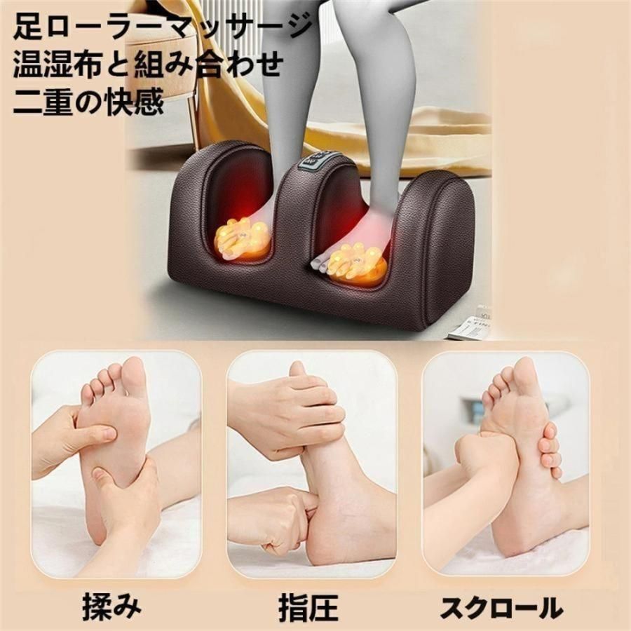 【機能2:フットマッサージ器】:足裏以外に足首やふくらはざ、にでも心地よくマッサージを楽しむことができ圭す。温熱機能が備えて、足元の血行をよくし、ふくらはぎのマッサージで