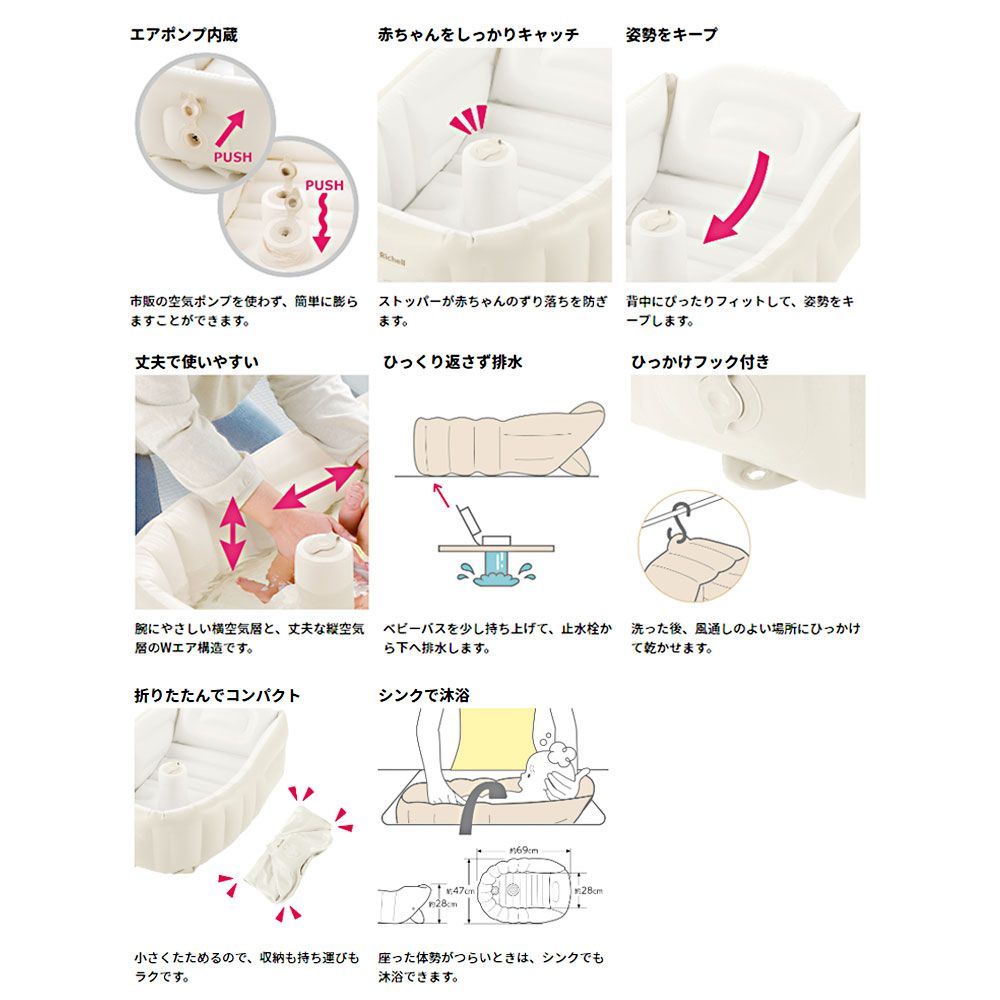 リッチェル ふかふかベビーバス プラスK ベージュ pto
