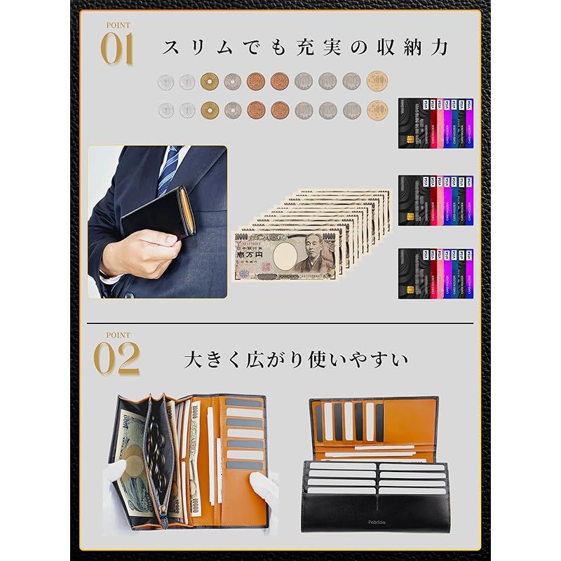 商品名:[ファブリツィオ] 財布 メンズ レディース 長財布 2つ折り マチ付き 小銭入れ 薄い 大容量 カード21枚 使いやすい イタリアン レザー 一流の革職人が作る 本革 YKKファスナー (ブラック)