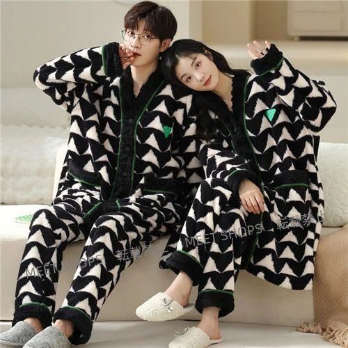 ペアパジャマ 冬 モコモコ カップル ペア ルームウェア セット 長袖 前開き パジャマ 夫婦 もこもこ メンズ 秋冬 結婚祝い プレゼン ddhc 68