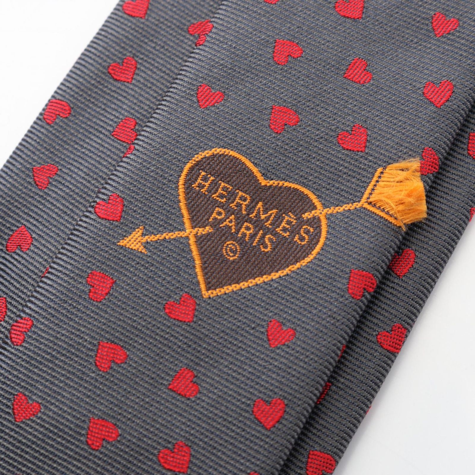 エルメス HERMES ネクタイ ダンシング ハート 339317 T グレー シルク メンズ