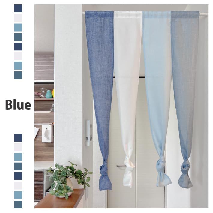 のれん 4連 グラデーション 暖簾 カフェカーテン 4連 無地 シンプル さわやか 鮮やか 四つ割れ アレンジ おしゃれ 間仕切り 目隠し インテリア 部屋 リビング キッチン 子供部屋 ドア つ