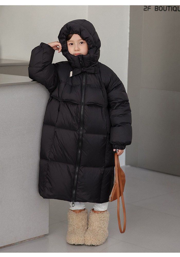 ダウンロングコート 女の子 ガルーズ 子供コート キッズ アウター ジャケット 長袖 ロング丈 フード付き 防寒着 暖かい 防風 秋冬 軽い 子ども お 防寒対策 kubuqi 05 DZ 30