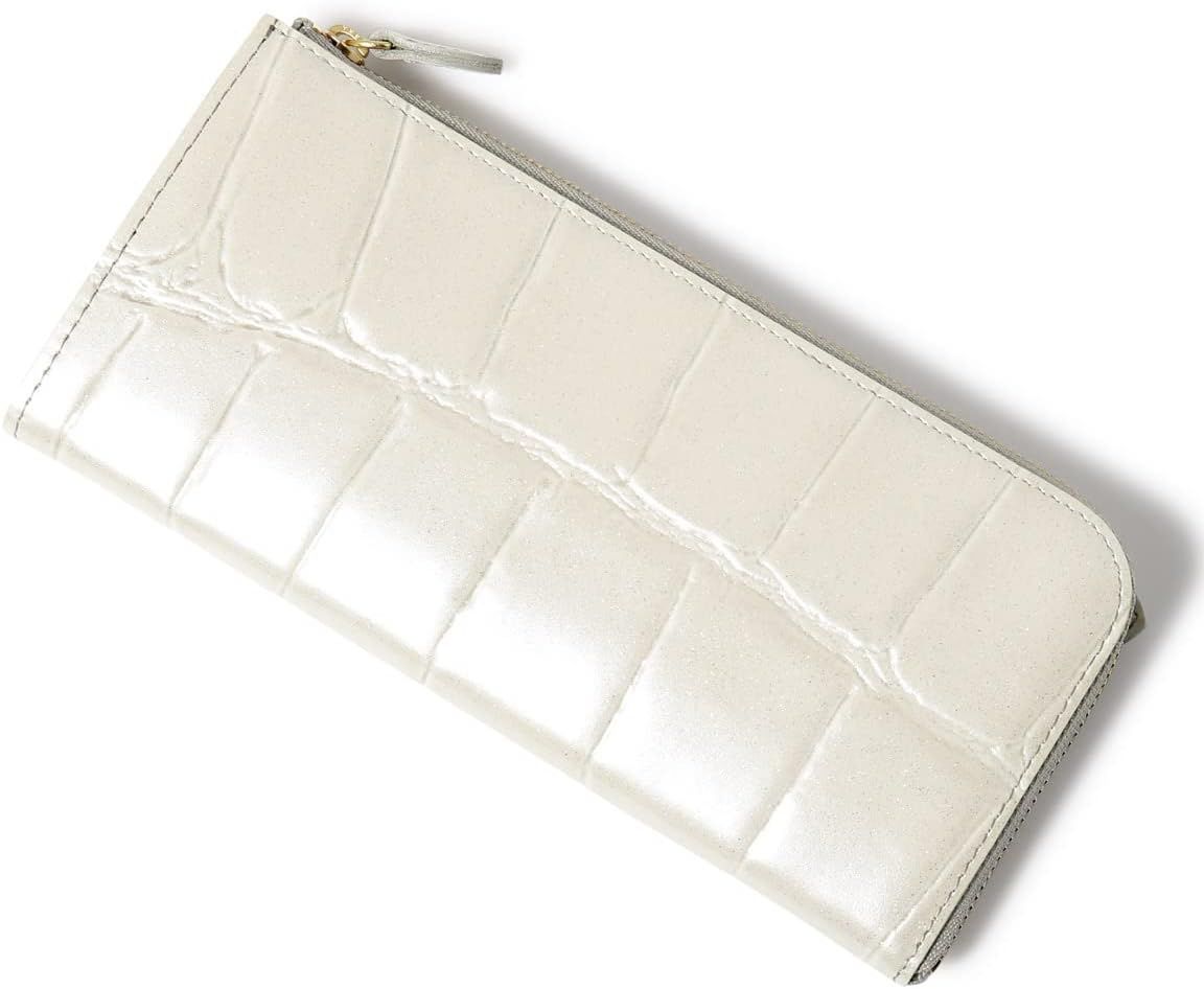 から発送 アルカン 長財布 L字ファスナー 本革 レディース テールワニ 1216-632 薄型 型押し エンボス ワニ 牛革 レザー 94 パール