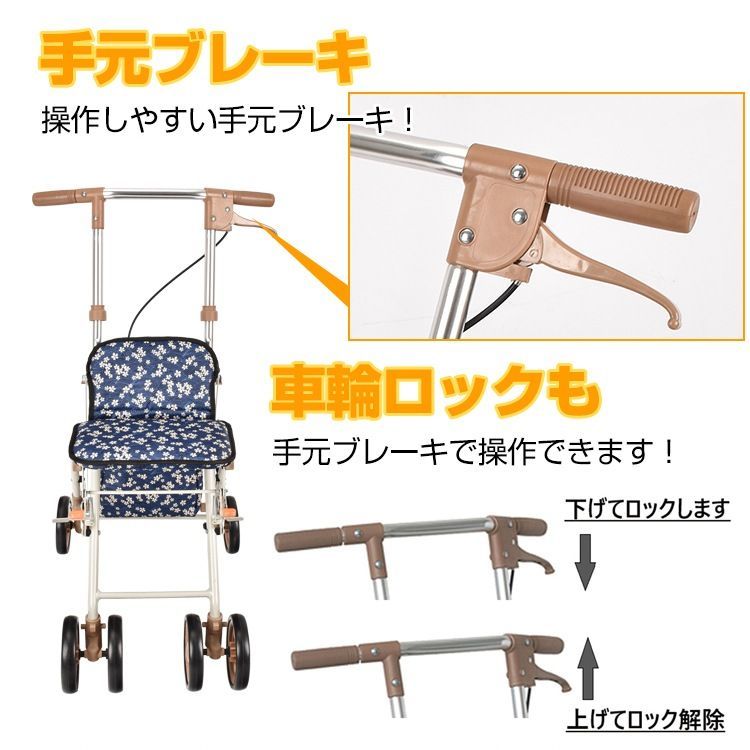 シルバーカー 軽量 コンパクト シルバーカート 折りたたみ おしゃれ ショッピングカート 買い物カート ブレーキ付き 休憩 座る 椅子 手押し車 高齢者 老人 シニアカート 歩行補助 歩行器 ny 594