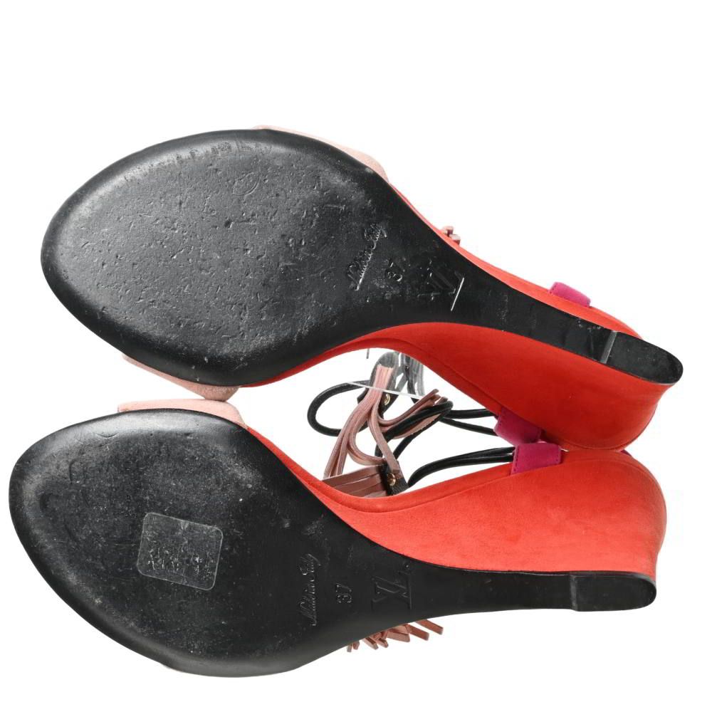 【商品名】:LOUIS VUITTON アンクルストラップ ブロックカラー スエード サンダル