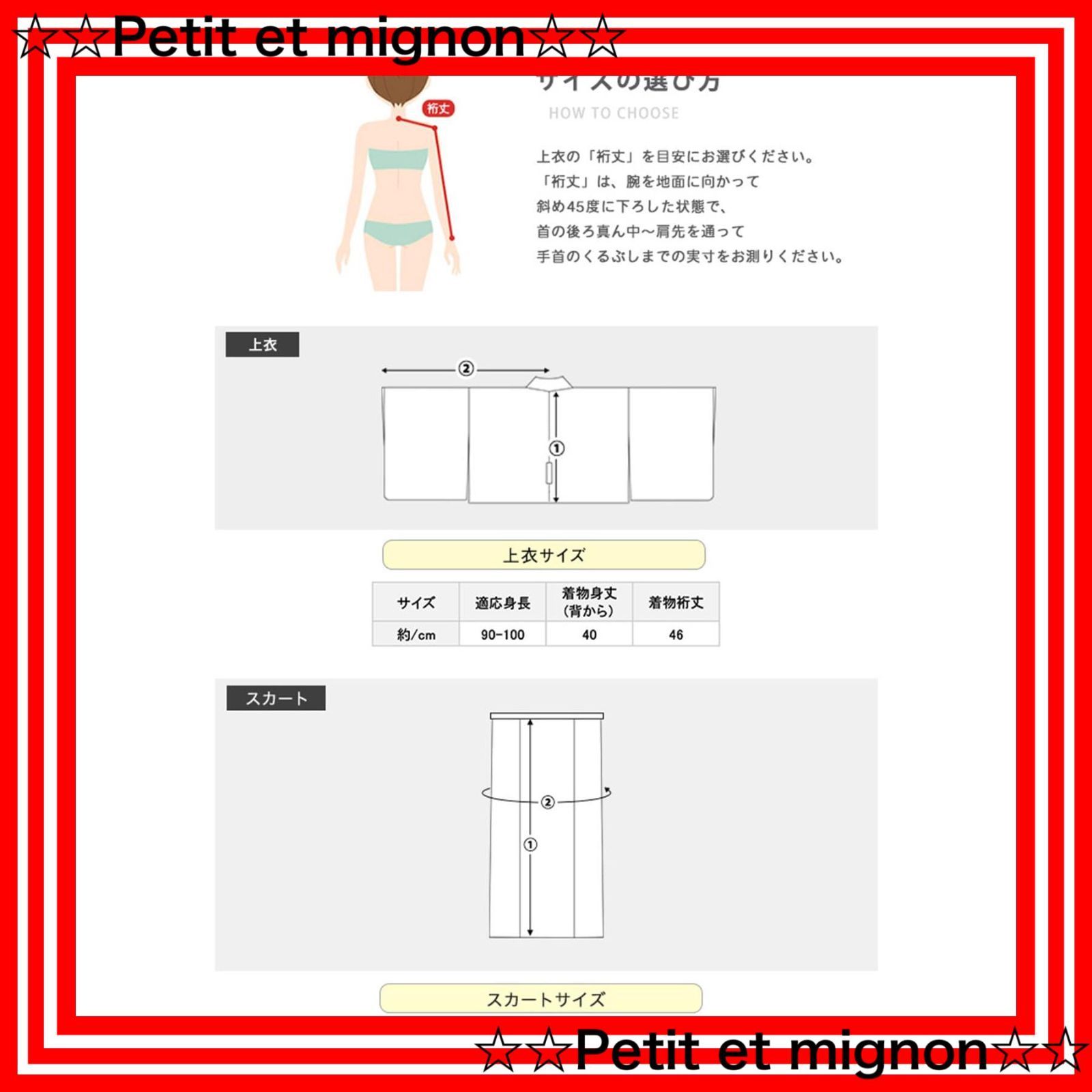 [サイズ]:着物身丈(背から)40cm着物裄丈46cm、スカート丈52cmウエスト回り/最大46-65cm