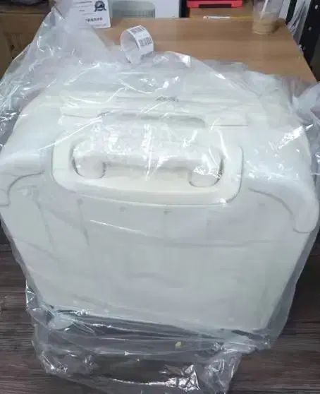 これは未開封の18インチの白いキャリアです。丈夫な素材で作られていて、すっきりとしたデザインです。機内持ち込みもできるので、旅行に行くときにも重宝すると思います。ご不明な点がなければ、すぐに安心してお支払いいただけます!
