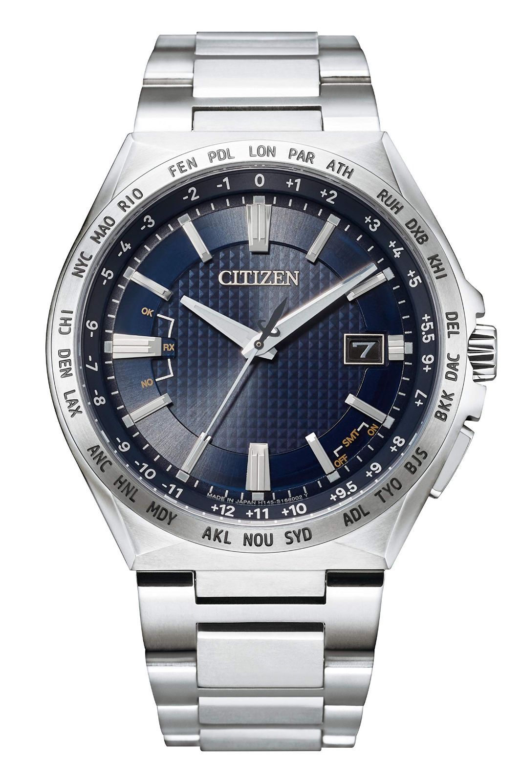 【商品詳細】光発電エコ・ドライブ電波時計、精度±15秒/月(非受信時)、日中欧米電波受信、ケース/バンド素材:スーパーチタニウム、サファイアガラス、10気圧防水、耐ニッケルアレルギー、耐磁1種、夜光(針+インデックス)、フィットアジャスター、パワーセーブ機能、パーペチュアルカレンダー、日付表示、ダイレクトフライト