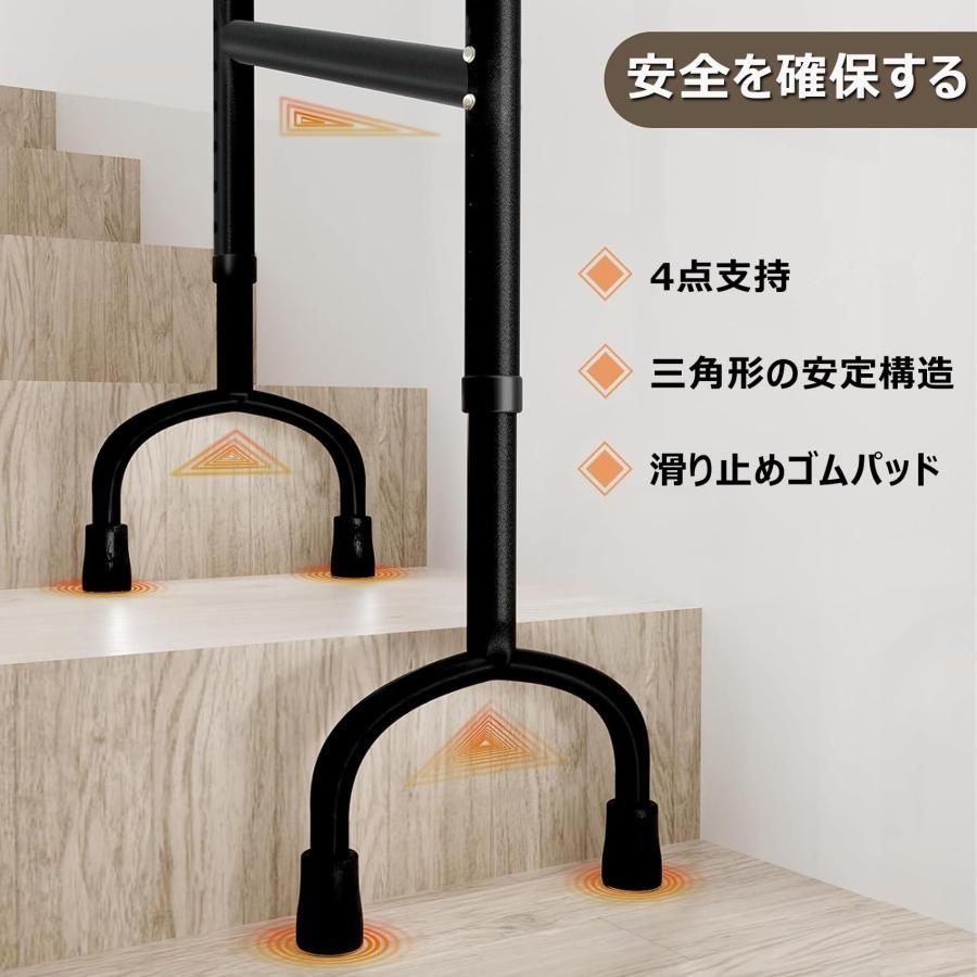 【調整可能な脚】:階段昇降杖の両脚には複数のレベルの調整があり、さまざまなステップの高さを調整できます。あらゆる段階で安定して安全です。