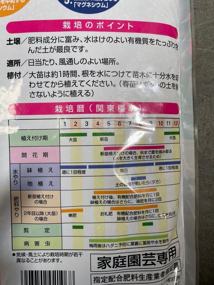肥料の5大要素(N P K Ca Mg)を主成分に、バラ栽培に必要な養分がすべて含まれています。