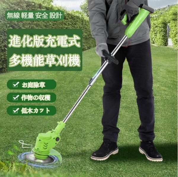 進化版 24 V充電式 草刈機 コードレスバッテリー式 替刃付き軽量 伸縮角度調整 安全 無線 充電式 充電器 バッテリ コードレス
