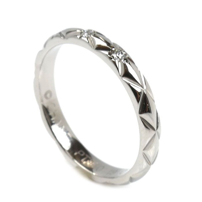 CHANEL シャネル Pt 950プラチナ マトラッセ 3 Pダイヤ リング 指輪 J 2821 ダイヤモンド 6号 46 2.6 g レディース