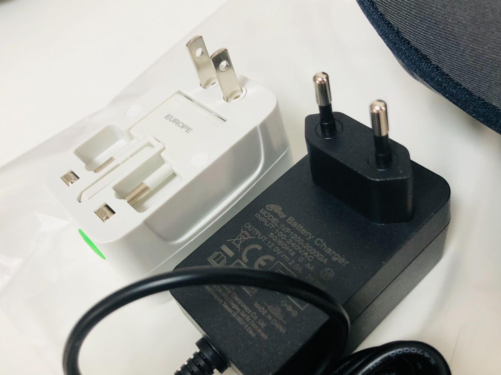 付属アダプタ―のプラグは海外向けでしたが、日本用に変換プラグが同梱されており、問題なく使用可能です(接続・電源ONの確認を行いました)