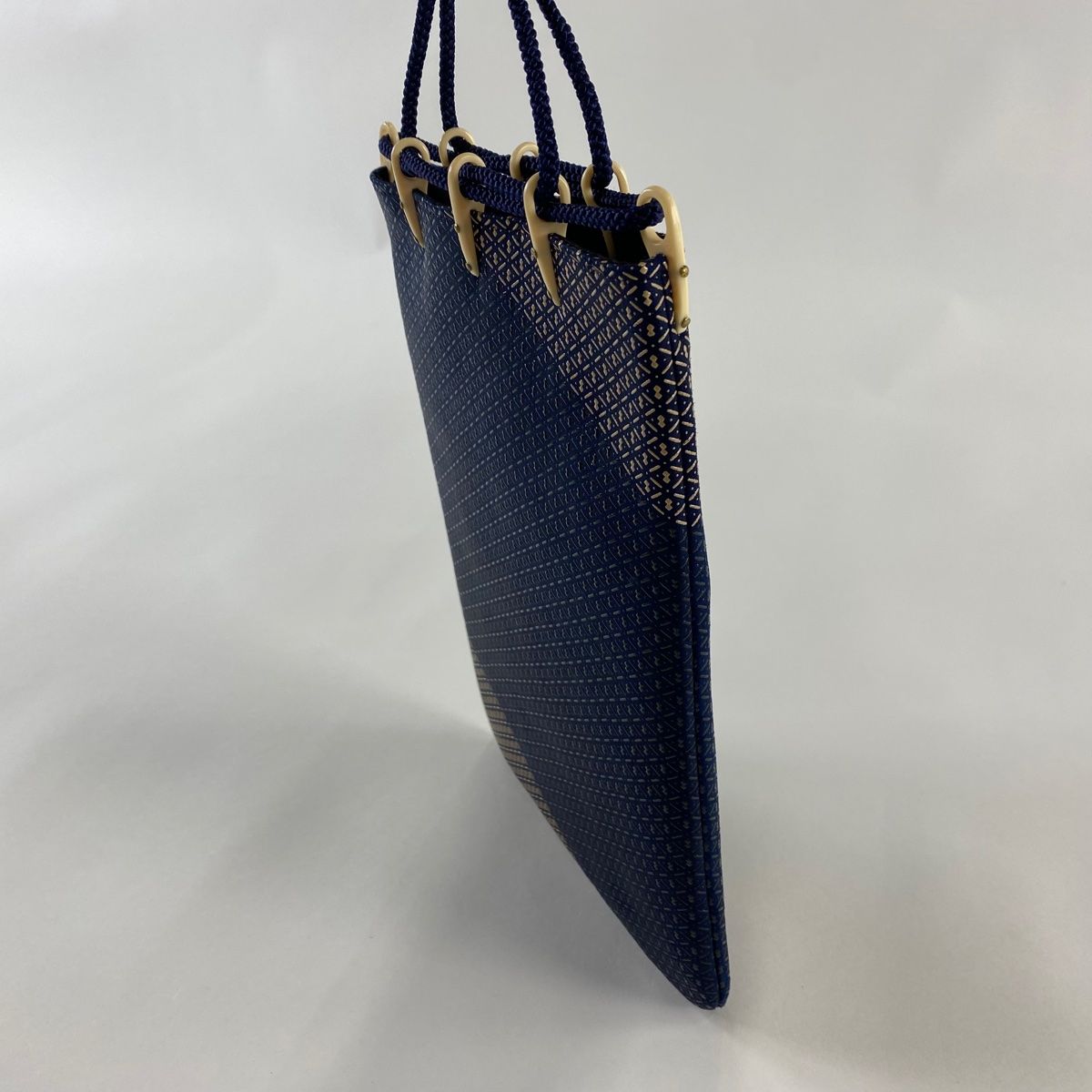 和装バッグ 印傳屋 合切袋 巾着 庵 菱 紺色 鹿革 和装小物